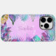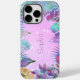 Personalize o nome roxo, ou monograma, com folhas tropicais iridescentes em fundo rosa com estrelas brancas.