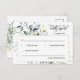 Este cartão de resposta RSVP de evento de casamento com suporte de endereço de devolução apresenta um estilo minimalista moderno e elegante com arranjos de folhas de folhagem verde em aquarela e bela caligrafia e fontes tipográficas limpas e serifadas em um fundo branco. A simplicidade e o design limpo deste cartão de resposta RSVP de casamento funcionam bem com todos os temas de casamento e definitivamente são um grande complemento para o seu casamento. Basta personalizar os nomes do casal, data, endereço de devolução e outras informações em algumas etapas fáceis e personalizá-lo para dar um toque pessoal agradável.