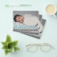 ******* O PAPEL MATTE É FINO. ATUALIZE UM PAPEL MAIS ESPESSURDO. NENHUM ENVELOPES INCLUÍDO. PARA CARTÕES, CARTÕES MAIS ESPESSURAS, VERIFIQUE O LINK ABAIXO. CARTÃO, CARTÕES ESPESSURAS TÊM UMA OPÇÃO PARA ENVELOPES OU INCLUI-OS******* Sem envelopes, versão do folheto. Economize dinheiro em anúncios formais com este anúncio menor e sem envelopes. Celebre seu novo pequeno com seu folheto de anúncio de nascimento azul. Quer este design em um estoque de papel maior e tem envelopes? Veja os nossos Anúncios de Bebês e a coleção de Chás de fraldas para outras cartas. https://www.zazzle.com/collections/baby_shower_invitations_birth_announcements-119377110354210702?rf=238937196885903396