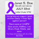 Folheto de benefícios do cancer com fita roxa que é a cor de propósito geral para a percepção do cancer.
