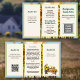 Folheto de pequenos negócios de casa rural para personalizar em ambos os lados e dobrar em terços. O fundo é de girassóis e uma cerca de piquetes. O texto é verde para os títulos e marrom escuro para o restante. Cada lado deste papel de tamanho 5x8 tem três seções com modelos de texto. Além disso, adicione um logotipo, código QR e / ou foto nos espaços fornecidos. Se você não quiser usar um ou mais dos suportes de imagem, remova-o indo para "editar na ferramenta de design" que pode ser encontrado rolando até a parte inferior da área de personalização. Na área de design, escolha a imagem clicando nela e, em seguida, pressione o símbolo do "lixo" para aquela imagem. Alterar o tamanho do papel pode alterar o design para não caber corretamente. Entre em contato comigo se você precisar de ajuda.