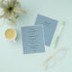 Folheto de Casamento de Caligrafia Azul com Dusty
