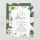 Este elegante design apresenta uma ilustração com aquarela de folhas elegantes e verdes e flores brancas poeirentas florescentes e chá de texto manuscrito de tendências. Personalize este convite elegante com seus detalhes, fazer perfeito para o chá de fraldas. Aproveite. Observe que os envelopes NÃO estão incluídos neste design. Se precisar de envelopes, verifique nossa coleção ou adquira-os separadamente do mercado.