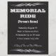 Memorial Ride ou Memorial Run convite para o memorial de motocicletas ou celebração da vida. Ornamento cromo sobre fundo preto de grunge com texto totalmente personalizável, basta substituir o texto por suas próprias informações para que os ciclistas se reúnam para um tributo memorial a um amigo perdido.