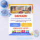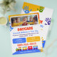 Todos a bordo para aprender e divertir-se com este creche colorido e este folheto do jardim de infância! Com um trem alegre e pegadas infantis, este folheto é perfeito para promover seu centro de assistência à infância, pré-escola ou programa de aprendizado precoce. As cores primárias brilhantes — vermelho, amarelo e azul — criam um olhar atraente e enérgico que captura a alegria da infância, mantendo uma aparência profissional e confiável. Ideal para provedores de creches, infantários e centros de educação precoce, esta design divertida, ainda que polida, ajuda-o a se destacar e a criar uma impressão duradoura nos pais. Este folheto personalizável é uma maneira maravilhosa de mostrar a criatividade, o calor e a dedicação da sua escola ao aprendizado precoce.
