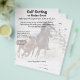 Um panfleto para organizadores de eventos de equitação ocidental, com a imagem de um cavalo cortante de vitelos e de um cavaleiro a trabalhar num concurso. O texto é uma modelo para alterar suas informações, mas, se necessário, mais texto pode ser adicionado usando o botão personalizar.