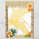 Um design gráfico do Tropical Luau Hawaiian Party Tiki Hut, do artista/designer Charmaine Paulson, em um Event Flyer. O folheto tem modelos de texto para sua personalização. ©2013charmanepaulson