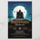 Design do Halloween apresenta uma casa assombrada, a lua, morcegos e abóboras assustadoras. Personalize digitando seu texto sobre o texto da amostra. Você também pode excluir texto existente e adicionar outro texto ou imagens pessoais. Para acessar ferramentas avançadas de edição, vá para "Personalizar" e role para baixo até acessar o link "ferramenta design".