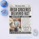 Ofereça novos negócios com este folheto de jornal antigo, projetado para serviços de entrega de compras. Com manchetes em negrito e um layout clássico de jornal, este folheto personalizável é perfeito para promover suas opções de entrega, área de serviço e informações de contato. Ideal para compradores pessoais, empresas locais de entrega de comida e serviços de entrega de refeições que procuram criar uma impressão duradoura.