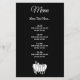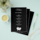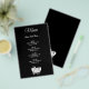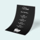 Um folheto elegante com roteiro branco e letras deco em preto para casamentos, comemorações ou restaurantes com um simples design com um conjunto de prateado em cinzas em um guardanapo branco bonito embelezado em cinza e preto. Personalize-o para alterar as fontes, as cores de fundo e até salvar seu design para mais tarde.