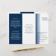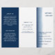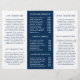 Brochura moderna triplicada que apresenta uma pincelada de cor azul-d-água marinho no lado esquerdo do painel frontal juntamente com o nome da sua empresa no topo e uma breve descrição dos seus serviços na parte inferior. O dentro tem um painel azul marinho no meio e nos painéis brancos em ambos os lados, com seções pré-fabricadas para obter informações sobre sua empresa e uma lista de preços. Um design simples que é excelente de um porteiro pessoal, salão de beleza, salão de cabelo, compro de barbeiros, maquiador e muito mais.
