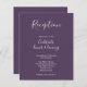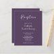O folheto de recepção de casamento apresenta um design tipográfico elegante, moderno e limpo com um esquema de cor roxa escura. Este folheto de recepção está pronto para você personalizar com os detalhes do seu dia especial.
