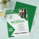 Serviços de árvore com folheto de promocional paisagístico com fácil personalização de modelos com logotipo da empresa, foto comercial, número de telefone, oferta de desconto, site, serviços e chamada para ação. Folheto perfeito para empresas de corte de árvores, diagnóstico de árvores e remoção de árvores.