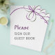 Folheto de Sinais de Convidado com design de Fita Moderna em ameixa e carvão.