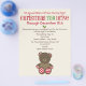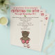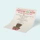Folheto de viagem de brinquedo de Natal com ilustração de um urso de pelúcia castanho com patas e orelhas riscadas vermelhas e brancas no fundo. Personalize o texto com detalhes.
