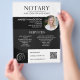 Uma versão em preto do folheto do agente de assinatura de notas e empréstimos com logotipo e código qr. Folheto do Agente de Assinatura de Notário e Empréstimo da Foto Moderna