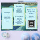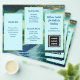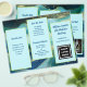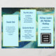 Design de ondas azuis, folheto de negócios para personalizar de ambos os lados e dobrar em três. Cada lado deste papel de 8 x 11 polegadas tem três seções escalonadas com modelos de texto em azul escuro. Adiciona também um logotipo comercial, código QR e / ou foto nos espaços fornecidos. Se você não quiser usar um ou mais detentores de imagem, remova-a indo para a "ferramenta editar no design" que pode ser encontrada rolando até a parte inferior da área de personalização. Na área de design, escolha a imagem clicando nela e pressione o símbolo "lixeira" da imagem.