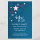 Modelo personalizável com tema patriótico para o Dia da Independência / festa de comemoração de 4 de julho, com estrelas americanas em vermelho, branco e azul. Clique em "Personalizar" para personalizar este folheto com seu próprio texto, para editar o layout ou para escolher um tamanho diferente.