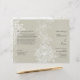 Flores gráficas esboçadas em branco contra um guincho macio fazem uma bela declaração sobre este folheto do programa de casamento. Flores semelhantes são repetidas como marcas d'água no reverso. Uma procura sentimental por um dia especial. Disponível em cores alternativas com produtos correspondentes.