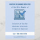 Um folheto em tons azuis para serviços profissionais de limpeza de janelas. Vem com uma ilustração de uma janela, número de telefone e uma lista de serviços!