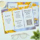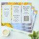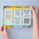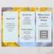 O Yellow Gingko deixa uma brochura comercial para personalizar de ambos os lados e dobrar-se em três. Cada lado deste papel de 8 x 11 polegadas tem três seções azuis-claras com modelos de texto. Adiciona também um logotipo, código QR e / ou foto nos espaços fornecidos. Se você não quiser usar um ou mais detentores de imagem, remova-a indo para a "ferramenta editar no design" que pode ser encontrada rolando até a parte inferior da área de personalização. Na área de design, escolha a imagem clicando nela e pressione o símbolo "lixeira" da imagem.