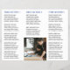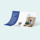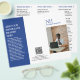 Folheto de folheto moderno triplo (é desdobrado) com um design simples e mínimo azul e branco com seu monograma em negrito junto com seu nome comercial e foto na frente. O dentro tem a sua lista de preços/menu de serviço e a parte de trás tem as suas informações de contato e o código QR opcional. Você pode remover as marcas triplicadas do código QR na ferramenta de edição de design.