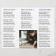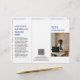 Brochura moderna triplicada (é revelada) com um design simples e mínimo azul e branco com seu monograma em negrito junto com seu nome comercial e foto na frente. O dentro tem a sua lista de preços/menu de serviço e a parte de trás tem as suas informações de contato e o código QR opcional. Você pode remover as marcas triplicadas do código QR na ferramenta de edição de design.