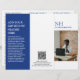 Brochura moderna triplicada (é revelada) com um design simples e mínimo azul e branco com seu monograma em negrito junto com seu nome comercial e foto na frente. O dentro tem a sua lista de preços/menu de serviço e a parte de trás tem as suas informações de contato e o código QR opcional. Você pode remover as marcas triplicadas do código QR na ferramenta de edição de design.