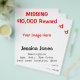 Folheto Preto Vermelho de Recompensa de Foto Perso