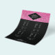 Coordena-se com o Modelo de cartão de negócios de brilho rosa e beleza glamour até 1201AM. Uma brilhante imagem de fundo rosa brilhante fornece um pano de fundo giro e giro para este belo modelo de folheto. Seu nome ou nome comercial é elegantemente estirado em uma placa de nome cortada em prata para um logotipo clássico. Motif na moda design para salões de beleza, designers de unhas, maquiadores, cosmetólogos, estilistas de moda, boutiques e muito mais. Excelente a ser usado para listas de preços, menus de serviço, folhetos de promocional e muito mais. © 1201AM CREATIVE