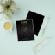 Folhetos de salão de beleza com escrita dourada mo