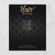 Folhetos de salão de beleza com escrita dourada moderna em damasco.
