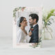 Envie gratidão sincera com este cartão de agradecimento de foto de casamento romântico de Natal de Inverno. Com uma bela combinação de elementos românticos de feriado, modelo de foto de casamento personalizável e folhagem elegante de Natal, este cartão postal é perfeito para cartões de agradecimento de casamento de inverno, notas de agradecimento de casamento de feriado ou cartões de agradecimento de foto de Natal. Com sotaques suaves em vermelho e verde, uma atmosfera aconchegante de inverno e detalhes botânicos, este design é ideal para casais que celebram um casamento de Natal, celebração de inverno ou evento romântico de feriado. Totalmente personalizável com sua foto favorita, é a maneira perfeita de expressar gratidão e criar uma lembrança memorável para seus convidados.