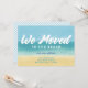 Esta emocionante carta de anúncio exude uma vibe relaxada e à beira-mar com sua paleta serena de cor que ecoa o azul tranquilo do oceano e os tons quentes das praias arenosas. É uma maneira deliciosa de transmitir a notícia de uma mudança de mar para viver à beira-mar. Esta design apelaria a quem sonhar com a vida costeira, refletindo a paz e o lazer que vem com a vida no mar.