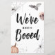 Participe de um divertido jogo de vizinhança neste Halloween "boo-ing" com seus amigos e vizinhos. Coloque esta placa na porta deles junto com um saco de guloseimas e as instruções correspondentes, e deixe a diversão começar. A design apresenta "nós fomos vaiados" com ilustrações bonitinhas de Halloween. Correspondendo à nota "você foi vaiado" e às instruções disponíveis em nossa coleção.