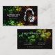 Fones de ouvido do DJ com os cartões de visitas coloridos das luzes. Cartões de visitas Funky e legal para algum profissional da música. As características ilustraram fones de ouvido no ontop urbano do estilo dos grafites de um fundo preto com olho estalando luzes coloridas.