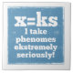 Uma ilustração engraçada para qualquer um que esteja ensinando ou aprendendo a língua inglesa através de fonics. Na maioria das capas, a letra grafeme X faz o som KS e, portanto, não é um fonema. O design engraçado diz que eu levo os fenômenos extremamente a sério. A palavra extremamente escrita é incorreta com o KS no lugar do X.