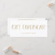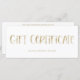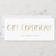 Este certificado de presente moderno, na moda, apresenta um fundo branco, com tipografia falsa em ouro timítico e escrita à mão.