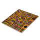 Azulejo cerâmico quadrado com imagem de um design geométrico africano laranja, azul, preto, roxo e verde. Ver correspondente copo expresso, caneca, placa de papel, trivet quadrado e portas copos. Veja toda a coleção Este e Aquele Azulejo na seção HOME.