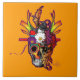 Artista interpretativa interminável do sudoeste icônico crânio de Día de los Muertos (Dia dos Mortos) celebrada pela artista Margaret Loftin Whiting com crânio, máscara, flores, pássaros e fitas fluentes. Colagem digital poster art viva com cores brilhantes do Sudoeste.