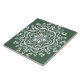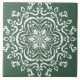 Esta mandala branca senta-se sobre um fundo verde da floresta. As cores são pacíficas. Parte da coleção Losonieth Mandala.
