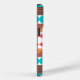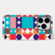 Abstrato geométrico iphone 14 pro case mate em cores azul, turquesa, vermelha, preta e laranja.