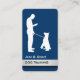 Treinamento profissional em cães e modelo de cartão de negócios de obediência, incluindo um treinador de cães e uma obediente silhueta de cães na frente e atrás, em um design inteligente de dois lados que inclui impressão lateral, além de layout de texto e cores azuis de fundo que você pode personalizar facilmente de acordo com seu gosto. Melhores cartões de visitas para uma escola ou aulas de treino de cães.