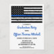 Convites de aposentadoria de linha azul fina ou convites para Festa de formatura de polícia. Celebre anos de serviço dedicado, ou comemore seu novo formando da academia de polícia, e convide amigos e família para a sua polícia com este convite à aposentadoria da polícia de linha azul fina e convites para formandos da academia de polícia - design de bandeira americana na polícia, cores angustiadas da design. Este convite para aposentadoria de policial também é perfeito para convites para formatura na academia de polícia, mudança de local na personalização. Veja nossa coleção para combinar presentes de aposentadoria, presentes de graduação policial, favoritos para festas e suprimentos. COPYRIGHT © 2021 Judy Burrows, Black Dog Art - Todos Os Direitos Reservados. Cartão-postal de lançamento de linha azul fina