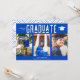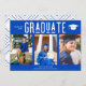Compartilhe a notícia da formatura do seu filho com este moderno anúncio de três formaturas fotomodernas a azul. Personalize o lado frontal com três fotos de mais velho, ano de graduação, nome e nome da escola. A parte traseira da placa apresenta um padrão de diamante azul e branco de coordenação.