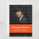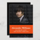 Convite para graduação em preto e laranja, com listas simples de cores populares, com faixas de cores elegantes e modernas nas escolas. Este anúncio é perfeito para o seu formando! Fácil de personalizar, basta adicionar uma foto do formando e detalhes da festa de formatura do seu filho ou filha. Clique em "Personalizar" para encontrar mais opções de personalização.
