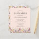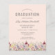 Uma bela borda floral de aquarela de flores silvestres decora a borda inferior deste convite de festa de formatura de vassouras. Personalize o texto da cinza de carvão em um fundo cor-de-rosa-pincelado com o nome do formando em script de escrita manual; o ano da escola e da classe em sans serif; e os detalhes da data, local e RSVP na fonte serif. A parte de trás do cartão apresenta um padrão de coordenação de flores silvestres em um fundo cor-de-rosa pincelado.