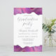 Este convite de festa de formatura de tendência apresenta uma borda superior e inferior de geode de agata de aquarela em tons de magenta com realces falsos de brilho prateado. As palavras "Festa de formatura" aparecem na fonte decorativa moderna de cinza prateada, escrita à mão. Personalize o convite com o nome do formando, a escola, o ano de aula e os detalhes da festa em cinzas prateadas de fundo branco. A parte traseira da placa é branca estável.
