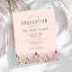 Uma bela borda floral de aquarela de flores silvestres decora a borda inferior deste convite de festa de formatura de vassouras. Personalize o texto da cinza de carvão em um fundo cor-de-rosa-pincelado com o nome do formando em script de escrita manual; o ano da escola e da classe em sans serif; e os detalhes da data, local e RSVP na fonte serif. A parte traseira da placa é robusta e robusta.