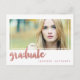 Cartaz fotográfico moderno elegante convidando sua família e amigos para a festa de formatura de sua filha. Quadro de Fotografias de Script Simples | Convite à festa de formatura. Design por Elke Clarke © Uma simples tipografia de folha de rosa dourada escrita a negrito com letra (efeito fotográfico impresso) com a palavra "formando" com um design fotográfico. Substitua a foto de exemplo por sua. Cor do ouro rosa branca e rosa rosa-rosa. Outros estilos e cores disponíveis.